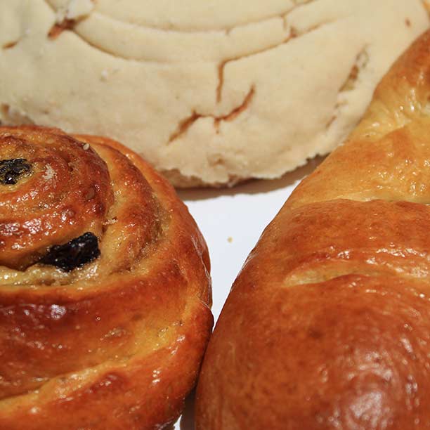 Concha de Chocolate, Rol de Canela, Bizcocho relleno de Piña. Técnica de amasado de bizcocho.